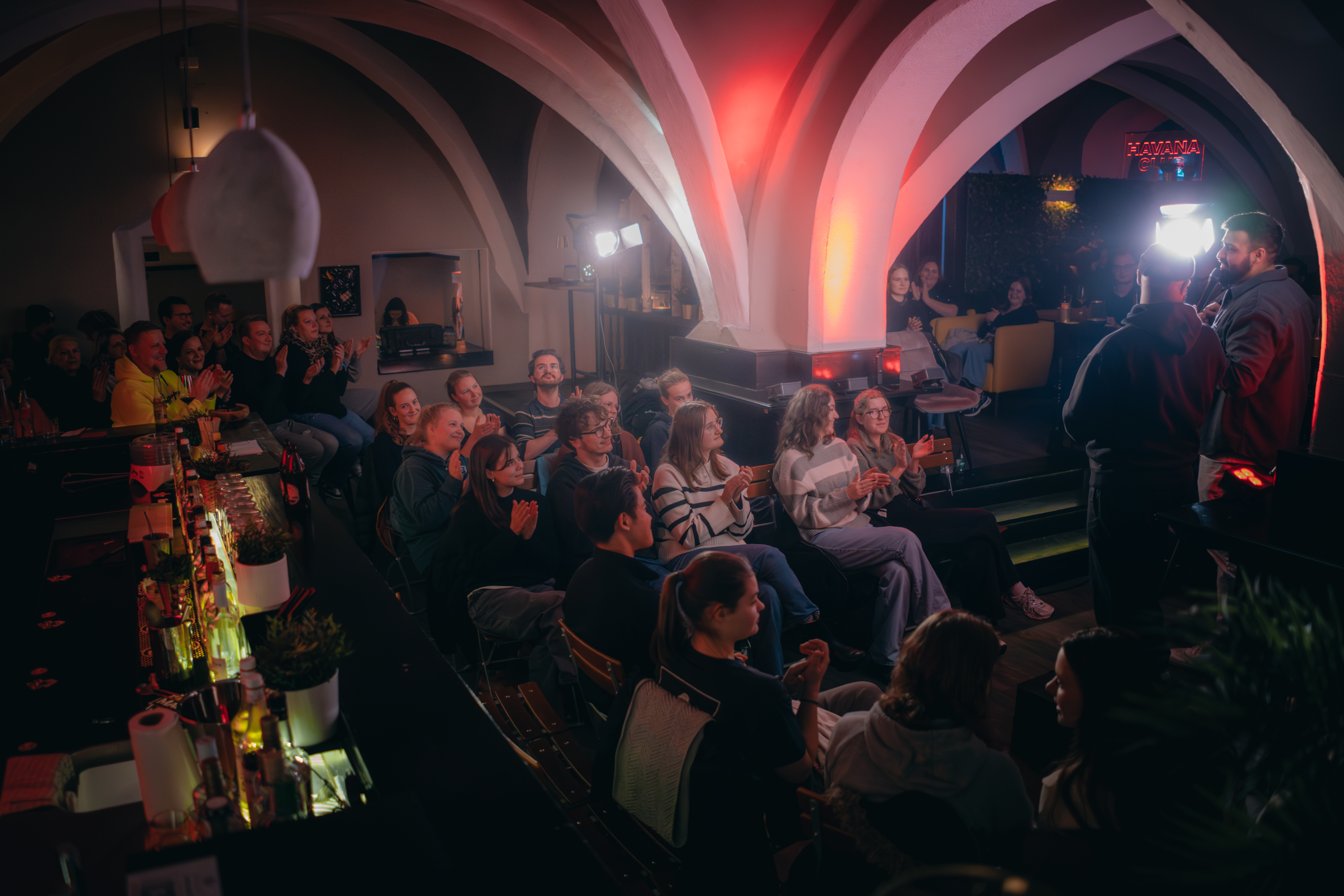 Beim Open Mic kann jeder auf die Bühne – egal ob erfahrener Stand-up Comedian oder absoluter Newcomer. Es gibt kein Bewerbungsverfahren, nur ein Mikrofon und dein Material. Einfach melden!